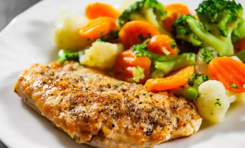 - Sirva o frango acompanhado dos legumes.